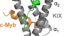SASA of the c-Myb TAD residues in the complex with KIX was calculated using the GetArea server (http://curie.utmb.edu/getarea.html)65. Prediction of helical propensity was performed using the AGADIR server (http://agadir.crg.es/)41,42,43. In the AGADIR prediction, the Myb32 sequence with Gly at N-terminus was used as an input sequence, and pH, ionic strength, and temperature were set to 7.0, 0.05 M, and 298 K, respectively, to match them with the experimental conditions.
