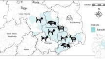 For directly transmitted pathogens (e.g., adenovirus, herpesvirus, parvovirus), contact rate (i.e., population density) determines transmission rates, and consequently pathogen seroprevalence and outbreak size19. Population density is also important for pathogens with environmental transmission (e.g., parvovirus) such that environmental reservoirs and contamination may accumulate more quickly at higher host densities20. The presence and population densities of sympatric reservoir hosts, including synanthropic animals, is also important for the dynamics of multi-host viruses (e.g., canine distemper, T. gondii)21,22,23,24,25,26, as well as parasites with intermediate hosts (e.g., Neospora caninum)27. Our large-scale dataset captures natural variation in human density, wolf density (e.g., population density, pack size, pack density), host presence (i.e., habitat quality), and primary prey, allowing us to examine their importance (Table 2, Fig. 2).
