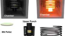 For ceramic materials to function as laser gain media, high optical quality with minimal internal scattering and defects is required. The common processing method for highly transparent Nd:YAG ceramics is densification of nano-powders by vacuum sintering4,5,9,10,11,12,13,14,15,16,17,18,19,20. This process is highly effective for producing functional transparent ceramics but requires several time-consuming steps, including preparation of a green body, sintering at a high temperature under high vacuum and post-sintering annealing. More recently, the one-stage pressure- and field-assisted sintering process, known as spark plasma sintering (SPS)21, has begun to emerge as a highly effective method for fabricating a variety of transparent ceramics22,23,24,25. SPS is an advanced sintering technique that combines uniaxial pressure with resistive heating by an electric current. The applied external pressure (typically 50–100 MPa) allows to achieve fully dense samples at relatively low temperatures and after short dwell times. An advanced approach of applying higher pressure during SPS (up to ~ 1 GPa) allows for reduced sintering temperatures while consolidating transparent ceramics with smaller grain size and improved mechanical properties25,26,27,28,29,30,31. Moreover, dense nanostructured ceramics can be fabricated by this so-called high-pressure SPS (HPSPS) technique, which allows to overcome birefringence in non-cubic structured ceramics25,27,32. Due to its potential functionality as a laser gain medium, ceramic Nd:YAG has been fabricated by conventional and high-pressure SPS33,34,35,36. Nevertheless, fabrication of highly transparent ceramics with sufficient optical quality by SPS is still a challenge, especially reaching the optical quality needed for reliable laser applications.