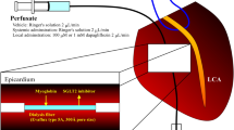 Rats were anesthetized with sodium pentobarbital (50 mg/kg, intraperitoneal). Anesthesia was monitored by the loss of the corneal reflex. Ligation of LAD was performed as previously reported6,15. In brief, after the rat was anesthetized, it was ventilated with a rodent ventilator throughout the experiment (Taimeng, Chengdu, China). After thoracotomy, LAD was exposed and the 6–0 silk was placed under LAD (Ethicon, Somerville, NJ, USA). LAD was occluded for 45 min followed by 180 min of reperfusion. Exhibition of epicardial cyanosis and dyskinesia in the heart was observed as evidence of successful occlusion of LAD. Upon reperfusion, epicardial hyperemic response was seen in LAD region of the heart. Hemodynamic parameters were recorded during the entire experiment (Taimeng, Chengdu, China). Remote liver ischemic preconditioning was done by four cycles of clamping hepatic artery, portal vein and venous trunk for 5 min followed by 5 min reperfusion. At the end of the reperfusion, the rats were euthanized with an overdose of sodium pentobarbital (200 mg/kg, i.p.). LAD was then re-occluded and left ventricle (LV) was filled with 1% Evans blue (Sigma Chemical Co., St. Louis, MO, USA) to show the ischemic area at risk (AAR). Tissue samples in the AAR were then taken and stored in − 80 °C freezer for later protein phosphorylation analysis.