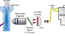 Our OA-FCM has a significantly smaller optical interrogation area compared to the channel cross section (~ 2%), which agrees with the estimated fraction of detected microbeads (2.36%) in our test solution (Fig. 2c, Test solution: ~ 4.55 × 107 particles/mL; 100 dilution, 150 µL/min; 10 s time window; expected number of signals: 11,375; average of measured signals: 268 signals). In the future, the flow stream containing cells or particles could be reduced in size by using either smaller microfluidic channels or microfluidic focusing via sheath flow arrangement to enhance the detected fraction.