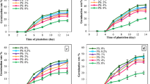 A germination experiment was performed in the physiology lab of PMAS Arid Agriculture University, Rawalpindi. Seeds of two lettuce varieties (Iceberg and Boston) obtained from the National Agricultural Research Centre Islamabad, were surface sterilized by treating with sodium hypochlorite (1%) solution for 5 min46. After that, seeds were successively washed with distilled water and were placed in Petri plates. There was a total of eleven treatments in this experiment which are described in Supplementary Table 1. Germination percentage, seedling vigor index, and promptness index46 were measured for each treatment.