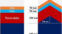 Herein, χ is the electron affinity, Eg is the band gap, εr is the relative permittivity, Nc is the density of state of the conduction band, Nv is the density of state of the valence band, µn is the mobility of electron, µp is the mobility of hole, NA is the acceptor density, ND is the donor density and Nt is the defect density. The thermal velocity of electron and hole are set be 107 cm/s. The absorption coefficient of FTO, Cu2O, CH3NH3SnI3 and TiO2 were extracted from experimental results15,40,41,42. The diffusion lengths of electron and hole were set to 260 nm and 560 nm, respectively, similar to the experimentally observed value of Ma et al.28.