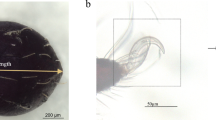 Our study is in line with previous findings12 in that CVA, including mite specimens from 19 different sampling localities (Fig. 1), based on the assignment to three habitat categories (mangrove, mix and rock) clearly revealed claw shape differentiation among diverse ecological environments. Samples from mangroves and rocky habitat separate well in the CVA scatter plot and specimens assigned to the mix type, cluster in between (Fig. 2). Depictions of the claws show mean shapes related to habitat use. Claw mean shapes (CMS) concurred well with the previously described high and strongly curved ‘rock-claw’ and the significantly lower and less curved ‘mangrove claw’. Nevertheless, shape characteristics were not that pronounced as in our previous study but given that our findings were based on more closely related populations, results made sense. Principal components 1 (PC 1) and PC 2 derived from analysis of 19 group CMS accounted for 72.8% of variation in the data (Fig. 3). CMS of the four different T. barbara populations clustered together at low PC 1 scores and high scores of PC 2, respectively. Claw differences among Thalassozetes, Carinozetes and Litoribates might be manifested in characteristics explained by PC 2. Concerning ecological impacts on claw shape, results of PCA further strengthened earlier findings that rock species show higher and stronger curved claws, especially in the distal part, while mangrove species possessed lower and less curved claws. Deformation grid in Fig. 3 showed mean shape differences in claw shape between rock and mangrove associated groups by deforming shape of average claw from negative PC axes 1 into that of positive PC axes 1. In our dataset claw shape did not reflect species classification or groupings into genetic lineages. PCA including only species from the genus Carinozetes showed that neither populations from the same species (C. mangrovi and C. bermudensis) nor populations belonging to the same genetic lineage clustered together in morphospace (Fig. 4). However, PCA scatter plot exposed a geographical cluster of the four populations (cman PA13; cman PA15; cman PA10 and cman PA01) from Panama. Results of PCA for claw shape in single genetic lineages are given in Fig. 5a–d. Specimens belonging to genetic lineage C. mangrovi ‘Pacific’ were not distinguishable in terms of sampling locality and microhabitat. Confidence ellipses for the three groups, cman PA01 and cman PA13 from rock and cman PA15 from mangrove roots, were completely overlapping and there was no separation among specimens from different habitats (Fig. 5a). Contrary to that plot, the PCA scatter plot of the C. mangrovi ‘Antillean’ lineage showed that confidence ellipses are hardly overlapping and claws of mites from mangrove habitats could be distinguished from those individuals sampled from rocks even within genetic lineage. Deformation grid within Fig. 5b illustrated that shape changes from rock type to mangrove type were changes from a more curved and broader claw to a more pointed, slender and dorsoventrally flattened claw. Our samples from the genetic lineage C. mangrovi ‘Northern’ were all derived from mangrove habitats but scatter plot showed separation, especially of specimens from Bermuda (cman BD23) and the two populations from Florida (cman FL17 and cman FL28) (Fig. 5c). All specimens from the lineage C. bermudensis ‘Atlantic’ were sampled from rocks and have similar claws. No separation among populations was recognizable (Fig. 5d). Traditional morphometrics, where we measured body length of every specimen in our study and related it to individual’s claw length, showed that claw length might be regulated by specimen’s body size (Figs. S1 and S2). We had variable measurements of body length, especially T. barbara individuals were much smaller than mites belonging to the other species. Nevertheless, the relation between body length and claw length was in the same range among all populations.