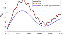Figure 3b shows the extinction efficiency \(Q_{ext}\) as a function of the wavenumber found by COMSOL Multiphysics (thick lines) together with the approximation for \(Q_{ext}\) according to Eq. (4) (thin lines with circles), where the blue curves show the respective extinction efficiencies for a disk. In the exact result for a disk (blue, thick line in Fig. 3b), the familiar patterns of wiggles and ripples are present. As we increase d, the sharp ripples disappear. However, we still observe some remnants of ripples at the smallest wavenumbers.