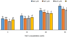 High salinity stress affects plant growth by changing their physiological parameters1. In this study, seedling emergence percentage and seedling growth (root and shoot length, fresh and dry weight) and relative water content were decreased with increased salinity. The reductions in emergence percentage might be due to the decrease in water uptake and enzyme activity caused by salinity17. Similar effects were shown in sweet sorghum17, wheat18, and forage sorghum19. In the present study, shoot and root length decreased as salinity level increased. The decline in root and shoot length and development might be due to ions toxicity or reduction in osmotic potential caused by decreased water uptake and nutrient absorption. The impacts of higher salinity on the root growth were more pronounced than shoot growth and caused the reductions in seedlings growth20,21. Some studies indicated that reduced growth of the plant due to the proportional increase of sodium21. Our results are in agreement with Khan et al.22, Nimir et al.17 and Ibrahim et al.3. The reduced in fresh and dry weight at the salinity stress might be due to the lowest water absorption cause by physiological drought23,24. Our findings are in agreement with those of Dheeba et al.25, who reported that salinity reduced the fresh and dry weight of plants. Ibrahim et al.2 noted that the negative correlation between growth characteristics and salinity stress. The result of decreased in RWC under salinity stress similar with the findings of Ibrahim et al.21.