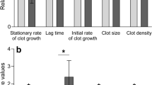 All the data were analyzed statistically using SPSS (Chicago, IL). The results were expressed as dot plots or the mean ± S.D. The differences in the existence of an abnormal clot waveform were assessed using a Chi square test. Values for more than three groups were compared using the Kruskal–Wallis test followed by the Games Howell test as a post-hoc test. Correlations were examined using the Spearman correlation test. P values less than 0.05 were regarded as statistically significant in all the analyses.