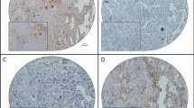 In a next step survival analyses were performed in the subgroup of advanced stage HGSOC. In this subgroup, a significant impact of PD-1 TIL expression on OS was seen univariately (Fig. 2 in supplemental material) and corrected for age, FIGO stage, and residual tumor mass (p = 0.037). A lower percentage of tumor infiltrating PD-L1 positive lymphocytes was associated significantly with favorable OS univariately without reaching significance if corrected for age, FIGO stage, and residual tumor mass (p = 0.084) (Fig. 2 in supplemental material).