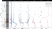 From depths of 860.00 to 767.23 m (Fig. 8 Pre-LAE), the lithology is argillaceous siltstone, pebbled sandstone, silty mudstone and thin-layer mudstone, thus reflecting a strong hydrodynamic sedimentary environment. The values of δ13Corg change from − 26.3 to − 24.8 ‰, showing an increase of 1.5‰, which may be related to increased photosynthesis. Studies on modern photosynthetic plants indicated that moderate increases in pCO2 are beneficial to bio-photosynthesis52. However, if the pCO2 gradually increases and exceeds a certain CO2 concentration value (e.g., − 20‰ to − 35‰), then photosynthesis will be inhibited or even decease53.