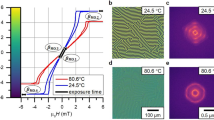 Given these results the setup seems to be capable to measure \(G(\xi )\), including the spatial correlations of magnetic structures equivalent to polarized small-angle neutron scattering (SANS). In polarized SANS the sample magnetism is considered to consist of a continuous magnetization vector field \(\mathbf {M}(r)\) which represents the magnetization state of the sample at each position r inside the material58. Magnetic SANS can thus be assumed an implication of nanoscale variations in the magnitude or orientation of the magnetization, or both, representing a magnetic structure. Here, we are using uniaxial polarization analysis which enables to measure four different scattering quantities which are related to the two probed neutron spin states spin-up \(\big | \uparrow \big \rangle\) and spin-down \(\big | \downarrow \big \rangle\). The orientation of the incident polarization and polarization analyses defines the quantization axis for the scattered polarization. An externally applied magnetic field \(\mathbf {H}\) at the sample position, as well as the guide field of the instrument, is aligned correspondingly and along the easy axis of the magnetization. The scattered neutron can either conserve the initial polarization direction in the scattering process described by the cross sections \(\frac {d\Sigma ^{++}}{d\Omega }\) and \(\frac {d\Sigma ^{--}}{d\Omega }\) for spin-up \(\big | \uparrow \big \rangle\) and spin-down \(\big | \downarrow \big \rangle\) incident polarizations, respectively, or it undergoes spin-flip scattering when undergoing a spin-reversing event due to the magnetic interaction with the sample according to \(\frac {d\Sigma ^{+-}}{d\Omega }\) and \(\frac {d\Sigma ^{-+}}{d\Omega }\). While in SANSPOL, referring to SANS with polarized neutrons, but no polarization analysis capability, only half-polarized cross sections are probed, the addition of polarization analysis enables all individual cross sections to be assessed separately. The corresponding expressions for the cross sections are denoted as the POLARIS equations and can be written as58: