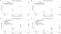 In order to check whether our results are broadly stable across multiple datasets of human mobility, we next conduct a similar analysis on publicly available commuting data from the United States census bureau’s LODES database46. Unlike the aggregate location history signals, this captures primarily work-home commuting trips. Nevertheless the aggregate mobility flows are strongly correlated with the LODES data up to around \(10^3\) commuters as seen in Fig. S5. Beyond this limit, the datasets diverge significantly indicating that the mobility data contains more information on non-commuting flows. With respect to the trends seen in Fig. 2, the commuting data is in qualitative agreement in terms of the average distance traveled, but differs in terms of the trip-frequency (Fig. S6). Here, there is little difference between the income groups in terms of how often they travel. The key reason here is the way that work-home commutes are calculated from the LODES database. Irrespective of how many times an individual commutes to work over the year, it is counted as a single instance of the flow. Thus apart from not capturing non-commuting flows, the LODES data is limited in terms of accurately reflecting the true number of trips made between locations.