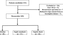 A total of 314 patients were admitted to the ICU at Gifu University Hospital during the study period. Of these, 220 patients were excluded for the following reasons: under 18 years old (n = 17), discharged from the ICU within 72 h (n = 79), undergoing hemodiafiltration (n = 9), did not give consent to participate in the present study (n = 115). Thus, the remaining 94 patients (70 men and 24 women) were enrolled in this study. A total of 831 samples were obtained, and the median number of measurements per patients was 8 (IQR, 4.25–15). Patient characteristics are shown in Table 1. The median age was 67.0 years (IQR, 53.3–77.0), median SOFA score on ICU admission was 6.0 (IQR, 4.0–9.8), and median duration of ICU stay was 10.5 days (IQR, 6.0–19.0). The most common condition upon admission was trauma (n = 40, 42.6%), followed by myocardial infarction (n = 15, 16.0%), sepsis (n = 10, 10.6%), burn (n = 6, 6.4), heatstroke (n = 3, 3.2%), heart failure (n = 2, 2.1%), acute aortic dissection (n = 2, 2.1%), ventricular fibrillation (n = 2, 2.1%), soft tissue infection (n = 2, 2.1%) and hypoglycemia (n = 2, 2.1%). The most common source of sepsis was Klebsiella species (n = 4), followed by Streptcoccus species (n = 3), Methicillin-susceptible Staphylococcus epidermidis (n = 1), Escherichia coli (n = 1) and unknown (n = 1). No patients had sepsis due to severe acute respiratory syndrome coronavirus 2 (SARS-CoV-2).