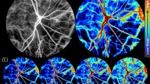 where \(F\) is the number of voxels \(P\left({x}_{i},{y}_{i},{z}_{i}\right)\) in the retinal layer under test where \(f\left(P\right)>0\) (i.e. the OCT blood flow exhibits some activity), \(f({x}_{i},{y}_{i},{z}_{i})\) is the blood flow intensity of these voxels, \({w}_{C}\) is scaling parameter introduced for controlling the index range. The theoretical range for the AFI is \({I}_{TFI}\epsilon ]\mathrm{0,1}[\). When \({I}_{TFI}\to 0\), the blood vessels in the layer under test do not exhibit flow activity, while when \({I}_{TFI}\to 1\), the blood vessels exhibit very intense flow activity.