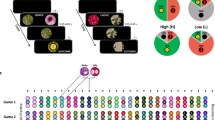 Among tasks requiring sequential decisions, the Balloon Analogue Risk Task (BART) has been a widely used laboratory measure because its structure and appearance mimic naturalistic risk taking23,24,25,26. This task requires sequential decisions on risk in the form of inflating virtual balloons on a screen. Participants are told that each balloon pump is associated with either a balloon inflation or a balloon burst. While balloon inflations are followed by reward (increasing score), balloon bursts are followed by no reward (loss of score accumulated on the given balloon). However, the outcome of each successive pump (inflation vs. burst) and the probability distribution determining the outcome are unknown to participants. As the task progresses, participants could learn about the payoff structure in a trial-and-error manner to maximize the total reward. Thus, the BART measures decision making under uncertainty and experience-based risk, at least during the early trials1,2,3,4,27.