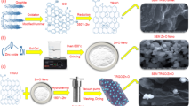 As shown in Fig. 2a, due to the presence of ZnO crystals in the sample, the XRD pattern of the nano-ZnO has nine characteristic peaks, including 31.8°, 34.5°, 36.4°, 47.8°, 56.8°, 62.9°, 66.5°, 68.0°, 69.1°. And same peaks also appeared in ZnO/WG nanospheres, including 31.8°, 34.5°, 36.4°, 47.8°, 56.8°, 62.9°, 66.5°, 68.0°, 69.1°, indicating that ZnO crystals also exist in the ZnO/WG nanospheres30,31. Furthermore, in the XRD patterns of the ZnO/WG sample, peaks appeared at 8.28°, 19.5°, 33.2°, 58.6°, different from the characteristic peaks of ZnO, were possibly due to the two-dimensional lattice of zinc basic salt, a kind of nano-hybrid formed by the interaction between Zn2+ and WG molecules32.