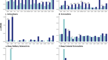 Since zooplankton dynamics in the study area follow seasonal phytoplankton productivity cycles46, it is likely that this important food source displays strong seasonal fluctuations. Both target species displayed the ability to utilize food sources variable in size and composition, therefore during the rest of the year it is very likely that the two species sustain their metabolism through feeding on other sources such as phytoplankton and DOM. Dissolved organic matter has proven to be an important food source for cold-water scleractinians when particulate food sources are scarce47. The ability to utilize DOM can be very important in oligotrophic deep-sea environments where food availability is seasonal and is likely to be further affected by climate change48. A number of previous studies have highlighted the variable and seasonally-dependent diet of octocoral species in temperate ecosystems19,49,50 while similar seasonality has been also reported in benthic Antarctic ecosystems27,51.