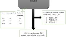 The study met the Declaration of Helsinki guidelines and was approved by the MUSC Institutional Review Board and all participating DCCT/EDIC centers. Each participant was over 18 years of age and provided written informed consent. The design, methods, and outcomes of the DCCT/EDIC study have been detailed previously15,16. Briefly, the DCCT aimed to determine if intensive diabetes management could prevent or delay the onset and/or progression of microvascular complications in T1D. Between 1983 and 1989, 1441 participants with T1D aged 13–39 years were randomized to conventional (n = 730) or intensive (n = 711) diabetes therapy16. In parallel, two cohorts were defined: a primary prevention cohort (n = 726) with 1–5 years duration of T1D, no retinopathy and urinary albumin excretion rate (AER) < 40 mg/24 h; and a secondary intervention cohort (n = 715) with 1–15 years duration of T1D, mild-to-moderate non-proliferative retinopathy and urinary AER < 200 mg/24 h. Baseline exclusion criteria included hypertension (≥ 140/90 mmHg or medication use), hyperlipidemia (fasting serum cholesterol level ≥ 3 SD above age- and sex-specific means or medication use), other CVD, and other significant medical conditions. In 1993, after an average of 6.5 years follow-up, the DCCT was terminated early because of clear-cut benefit of intensive treatment on the primary end-point, retinopathy, and similar benefits on nephropathy and neuropathy16. In 1994, the majority (96%) of the surviving cohort entered the observational follow-up EDIC study15, which continues today with 94% of survivors continuing participation. During DCCT, the mean HbA1c in the intensive vs. conventional treatment arms were 7.2% and 9.1%, respectively, but throughout EDIC the two treatment arms have maintained similar HbA1c of 8.0%15.