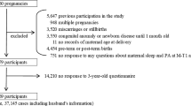The study protocol was approved by the Ministry of Environment’s Institutional Review Board on Epidemiological Studies and by the Ethics Committee of all participating institutions: the National Institute for Environmental Studies that leads the Japan Environment and Children’s Study (JECS), the National Center for Child Health and Development, Hokkaido University, Sapporo Medical University, Asahikawa Medical College, Japanese Red Cross Hokkaido College of Nursing, Tohoku University, Fukushima Medical University, Chiba University, Yokohama City University, University of Yamanashi, Shinshu University, University of Toyama, Nagoya City University, Kyoto University, Doshisha University, Osaka University, Osaka Medical Center and Research Institute for Maternal and Child Health, Hyogo College of Medicine, Tottori University, Kochi University, University of Occupational and Environmental Health, Kyushu University, Kumamoto University, University of Miyazaki, and University of Ryukyu. Written informed consent was obtained from all participants. All methods were performed in accordance with the approved guidelines.