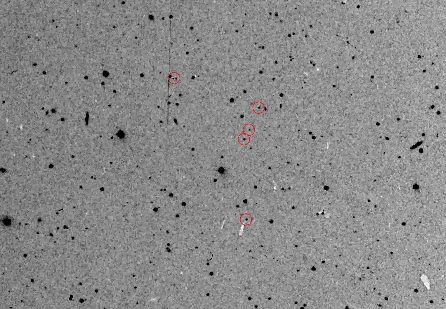 The first picture zooms in on the location of the 6 "transients" listed in Table 1, circled in red. Note the significant emulsion damage including white spots where the emulsion has been entirely removed. https://uploads.disquscdn.c...