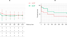 In the present study, UCP significantly reduced both IOP values and daily number of hypotensive medications throughout the entire follow-up period. At 2 years, mean IOP reduction from baseline was 40.5%, 68.1% of eyes had controlled IOP and only 15 patients (less than one fourth) underwent additional glaucoma surgery. Furthermore, the procedure was safe, with no major complications recorded in any of the treated eyes. Thus, our results support the use of UCP as a therapeutic option for patients with uncontrolled IOP despite maximum medical therapy or intolerance to glaucoma medications. The results of this study are consistent with several previous studies with shorter follow-up that reported an IOP reduction ranging from 30 to 42%111,12,13,14,15,16,17,18,19,20,21,22. However, it is difficult to directly compare these studies due to differences in study population, baseline IOP value, postoperative treatment protocol and study design.