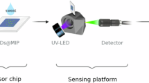 After MIP preparation, its efficiency was evaluated by analysis of test samples (l-cysteine standard solution). For this intent, the dark brown surface layer of the MIP/NIP was washed twice with 50 µL of optimized washing solvent to remove the template. These prepared MIPs/NIPs were used for subsequent experiments. The first step of the analysis is the sample loading; 50 µL of l-cysteine standard solutions (at various concentrations) were added to the well plate and interacted with MIP/NIP for 1 h at 250 rpm at ambient temperature. Next, the sample solution was discarded and the polymer layer was washed with 20 µL of water. The second step involved in-situ formation of fluorescent probes (ZnCd/S QDs) according to our previous work25. Briefly, 50 µL of mixture of precursors (zinc acetate (0.53 mM) and cadmium acetate (0.082 mM) prepared in phosphate buffer (100 mM, pH 7.0)) was added to the MIP/NIP after sample loading. The plate was irradiated in the UV transilluminator (Vilber Lourmat, Marne-la-Vallee Cedex, France) with 6 emitting lamps of 15 W/each emitting the light of 254 nm (irradiation time was optimized). After irradiation for a desired time period the fluorescence intensity was measured using fluorescence spectrometry (λex: 376 nm, gain: 100, emission wavelength from 400 to 700 nm measured by Synergy H1 (BioTek, USA)).