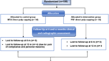 Nineteen patients (4 patients with 2 teeth each) in the age group of 9–25 years with immature, non-vital permanent maxillary central incisors (n = 23) with/without signs and/or symptoms of periapical pathosis (PAI index-up to scale 2–small changes in bone structure) and open apex (apical diameter greater than 1.1 mm) were included in this study. The study protocol was presented to the Institutional Review Board and approval was obtained based on the regulation of the Ethical Committee of the Faculty of Dentistry, SRM Institute of Science and Technology (SRMDC/IRB/2014/MDS/No.304) and registered in Clinical Trial Registry of India (CTRI/2017/10/010,246) (30/10/2017). Patients were explained about the treatment protocol and informed consent was obtained from the patient and his/her parent (if the patient was less than 18 years of age). Detailed medical and dental histories, and clinical examination with pulp sensibility testing and radiographic examination of the involved teeth were carried out to confirm the diagnosis. Teeth with closed apex, caries lesions, periodontally compromised teeth, resorption, teeth with root fracture, teeth other than maxillary central incisors were excluded. All procedures were carried out in accordance with the Ethical Committee guidelines of SRM Institute of Science and Technology and AAE guidelines for regenerative endodontics (8.5.2014). The flowchart according to the STROBE guidelines is depicted in Fig. 1.