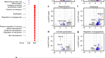 We confirmed the expression of Usag-1 in mHAT9d cells derived from mouse odontogenic epithelial cells (Fig. 1A) and designed two types of Usag-1 Stealth siRNA (#304 and #903) (Table 1). In our previous study, we determined the necessary conditions for transfecting mHAT9d cells with Stealth siRNAs17. To evaluate the knockdown efficiency of Usag-1 siRNA, we performed semiquantitative reverse transcription-polymerase chain reaction (sqRT-PCR) analysis in mHAT9d cells, finding that Usag-1 mRNA levels were reduced by ~ 50% with Usag-1 Stealth siRNAs #304 and #903 (Fig. 1A). To evaluate the effect of Usag-1 knockdown on tooth development, we investigated mandible explant cultures using serum-free medium containing Stealth siRNA. We confirmed the same efficiency of Usag-1 knockdown by both #304 and #903 in mandible explant cultures relative to that observed in mHAT9d cells (Fig. 1B). After a 10-day culture, we investigated tooth development with respect to staging and the number of tooth germs following transfection with both Usag-1 siRNAs and Runx2 Stealth siRNA #1623, the silencing efficacy of which was confirmed previously17. We found comparable staging and a high number of tooth germs following Usag-1 knockdown and comparable staging and a low number of tooth germs following Runx2 knockdown (Fig. 1C). These results demonstrated the biological effects of local application of Usag-1 and Runx2 Stealth siRNA on tooth development.