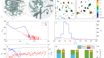 Representative 2D and 3D correlative datasets showing spatially registered images from STEM, FIB-nt and X-ray CT are shown in Fig. 1. We have previously demonstrated the efficacy of our protocols to capture and stabilise delicate flocs without modification of floc geometry and with significant preservation of biological components26. Once segmented, these image data generate quantitative 3D reconstructions of particle–particle and nm to mm scale (3D FIB-nt and 3D X-ray CT respectively) structural associations and are false coloured to aid visualisation of complex composition. Flocs were characterised into functional groups (FG) according to observations of representative particle–particle interactions and the 3D spatial arrangement and association of floc components.