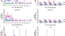 Tissue RNA was extracted using the Qiagen RNeasy Mini kit cat. # 74106 (Qiagen, Toronto, Canada) according to the manufacturer’s instructions. vRNA was extracted from nasal washes using the Qiagen QIAamp Viral RNA Mini Kit cat. # 52904 (Qiagen). All host qRT-PCR was performed in triplicate on cDNA synthesized as previously described43 (Table 1). vRNA was quantified by Qiagen Quanti-fast RT probe master mix (Qiagen, Toronto, Canada) using primer/probe sets specific for the SARS-CoV-2 E gene. The reactions were performed on a StepOnePlus Real-Time PCR System in a 96-well plate (Thermo Fisher) as previously described78.