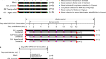 In December 2019, Severe Acute Respiratory Syndrome Coronavirus 2 (SARS-CoV-2) emerged in Wuhan, Hubei, China, leading to a pandemic spread where as of April 20, 2021, more than 140 million cases and over 3 million deaths have been confirmed1,2. SARS-CoV-2, identified as the causative agent of COVID-19 (Coronavirus disease 2019), is a beta-coronavirus belonging to the Coronaviridae family of enveloped positive sense, single-stranded RNA viruses with significant similarities to SARS-CoV-1 which emerged in 20023,4. Infection in humans with SARS-CoV-2 can lead to severe disease, hospitalization, and death in some cases while others may remain subclinical or develop only mild disease; therefore, the clinical picture of COVID-19 is significantly varied and disease can range from mild nasal congestion and sore throat to severe pneumonia with diffuse alveolar damage leading to multi-organ failure and death5,6,7. Non-respiratory symptoms such as loss of taste and smell, the development of microblood clots, strokes, neurological impairment, and long-term complications (Post-Acute Sequelae of COVID-19 (PASC)) have also been reported or associated with infection8,9. Epidemiological analysis across several countries has indicated that there are several host factors including sex, age, and co-morbidities that can increase COVID-19 severity. Demographic analysis has inidicated that men have increased severe disease and mortality following SARS-CoV-2 infection compared to women10,11. Age also has a clear impact on COVID-19 where case fatality rates (CFR) significantly increase with age5,11. Indeed, the CFR for COVID-19 in individuals < 40 years of age is less than 0.2% whereas those aged between 60 and 69, 70–79, and 80+ have CFRs of 3.6%, 8.0%, and + 14%, respectively11,12. Thus people > 65 years of age are considered the highest risk group for developing severe illness by the US Centers for Disease Control and Prevention (CDC)13. In the US alone, 80% of COVID-19-related fatalities have occurred in patients > 65 years of age5 and long-term care facilities have been demonstrated to be particularly vulnerable to COVID-1914,15,16. Clinical identification of COVID-19 in the elderly is also constrained by differences in disease symptoms including tachypnea, unexplained tachycardia and increased blood pressure, altered mental status, muscle pain, and fatigue14,17. Understanding COVID-19 disease mechanisms in higher-risk groups, including males and the elderly, remains a significant public health priority and will inform supportive care and treatment modalities as well as vaccine strategies for high-risk groups.