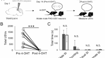 All statistical analyses were carried out with STATISTICA (StatSoft, Inc., Tulsa, OK, USA). All tests were two-tailed and differences were considered significant where p < 0.05. Distributions of 57 measured parameter values of 70 distributions did not depart from normality (Kolmogorov–Smirnov test, p > 0.05). As ANOVA is relatively robust to departures from normality43, this was not an obstacle to the application of the parametric tests. We used a repeated measures ANOVA to compare USV call rates and the acoustics of joint USVs between isolation and handling stages. We used a two-way ANOVA with trial stage as fixed factor and animal ID as random factor, to compare the acoustics of USVs between isolation and handling stages.