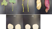 In the United States, sweet potato is a crop primarily grown in warmer states with long growing seasons, such as North Carolina—which leads the country in sweet potato production17—Louisiana, Mississippi, and California. These states accounted for > 90% of the 3.1 billion pounds of sweet potato grown in 2015 in the USA17. Originating from tropical areas in Central America and northwestern South America18, sweet potato is adapted to warmer climates and soils and a longer growing season. However, many regions in the northern latitudes in the US and Canada are increasingly interested in cultivation of this crop due to its economic value in grocery markets as well as for industrial products19,20,21,22. Geneva, New York, where this project was conducted has, on an average, ~ 5 °C lower daytime temperatures and 5–12 °C lower nighttime temperatures in the US’s primary growing months of June–September, than principal sweet potato growing regions such as Raleigh (USA), Xuzhou (China), Lagos (Nigeria) as well as Okinawa (Japan) where the popular purple-fleshed ‘Okinawan’ sweet potato originated (Supplementary Fig. 1). This temperature gap and the shorter growing season are representative of conditions across the northern latitudes, thus necessitating the evaluation of sweet potato growth and anthocyanin yield in cooler climates for a better understanding of their economic potential. We note that the goal of this study was not to compare whether individual varieties produce higher/lower anthocyanin yields in cooler climates vs. warmer climates, but only to determine the levels and types of anthocyanins produced in cooler climates.