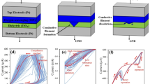 The electrical characteristics were measured at room temperature using a semiconductor parameter analyzer (HP4155C, Agilent), a Tektronix AFG 31,000 arbitrary function generator, a Tektronix MDO3054 mixed-domain oscilloscope, and a Keithley 2636 B sourcemeter SMU instrument. The limits of the retention and endurance measurement were 900 s and 108 cycles, respectively.