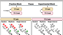 As shown in Table 2, manual ratings of perceptual orientation revealed that 73% (SD = 17%) of participants’ thoughts were internal/imaginative, 24% (SD = 15%) were external/perceptually-coupled and 3% (SD = 3%) pertained to interoceptive experiences such as drowsiness, itch, and hunger, similar to Van Calster et al.42. Thoughts were most often rated as present-oriented (M = 50%, SD = 21%), followed by future-oriented (M = 21%, SD = 18%), past-oriented (M = 17%, SD = 11%), and atemporal (M = 12%, SD = 10%). However, the percentage of future-oriented thoughts increased in frequency when internal thoughts were analyzed alone (present: M = 31%, SD = 27%; future: M = 30%, SD = 26%; past: M = 23%, SD = 22%; atemporal: M = 16%, SD = 16%). On average, and in line with prior studies49, thoughts were rated as predominantly neutral in valence (on scale of − 5 to 5, M = − 0.15, SD = 0.47). A one sample t-test determined this rating was not statistically different from 0 (t(26) = − 1.67, P = 0.11, CI95: [− 0.34; 0.04], Cohen’s d = 0.32). Thoughts were also rated as moderately self-focused (M = 2.18, SD = 0.72, on a scale of 0 to 4).