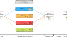 Improvements in the outcome measures were calculated as post-training score (T2) minus baseline (T1) score, and all participants were analysed as a single group to increase power.