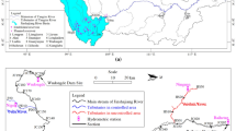 The scope of the reach was calculated. Stretching from Zhutuo to Daba in the TGR area (Fig. 1), the calculated reach includes the trunk stream of the Yangtze River and some of the segments of the Jialing River and Wujiang River (tributaries of the Yangtze River). With a length of about 400 km, the trunk stream was divided into 400 calculated sections, with each section being an average of 1.9 km long. The 61.3 km long Jialing River flowing from Beibei to the estuary was divided into 26 sections, with each section being an average of 2.4 km long. The Wujiang River, which is 67.7 km long and flows from Wulong to the estuary, was divided into 36 sections, of which each is an average of 1.9 km long.