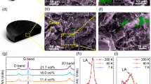 where \(\chi = {{\partial \omega_{G} } \mathord{\left/ {\vphantom {{\partial \omega_{G} } {\partial T}}} \right. \kern-\nulldelimiterspace} {\partial T}}\) is the temperature coefficient of the Raman G band. From Eqs. (1) and (2), the thermal conductivity is derived as
