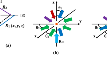 Below we discuss the situation where d–d interaction and collective decay exist2,39,40,47,48, i.e., g and \(\gamma \) are not zero. According to the definition of d–d interaction2,40,49, \(g_{jk}\) \(=\) \(\frac{3}{2}\gamma \{(1-3\cos ^2\vartheta )[\sin (k_0r_{jk})/(k_0r_{jk})^2\) \(+\) \(\cos (k_0r_{jk})/{(k_0r_{jk})}^{3}]\) − \((1-\cos ^2\vartheta )[\cos ({k}_{0}{r}_{jk})/({k}_{0}{r}_{jk})]\}\) and \(\gamma _{jk}\) \(=\) \(\gamma \{\sin (k_0r_{jk})/(k_0r_{jk})\) \(+\) \(\frac{1}{2}(3\cos ^2\vartheta -1)\) \([(3/(k_0r_{jk})^2\) \(-1)\sin (k_0r_{jk})/(k_0r_{jk})\) − \(3\cos (k_0r_{jk})/{(k_0r_{jk})}^{2}]\}\) for \(j,k=1,2\) and \(j\ne k\). Here \(k_0\) \(=\) \(\omega /c\) \(=\) \(2\pi /s_0\), \(s_0\) is the resonant wavelength, the diagonal elements \(2\gamma _{11}=2\gamma _{22}=2\gamma =4|{\mathbf {d}_{eg}}|^2\omega _0^3/(3\hbar c^3)\) is just the spontaneous emission coefficient of a single atom, and \(\mathbf {d}_{eg}\) is the dipole moment40. \(\vartheta \) is the angle between the direction of the dipole moment and the line joining the jth and the kth atom, whose distance is denoted by \(r_{jk}\) \(=|\overrightarrow{r}_j-\overrightarrow{r}_k|\). From this definition of \(g_{jk}\) and \(\gamma _{jk}\), it is easy to find \(g_{12}=g_{21}=g\) and and \(\gamma _{12}=\gamma _{21}\).