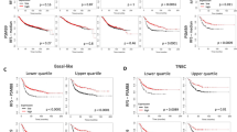 To further validation, we chose 60 pairs BRCA tissues and their corresponding adjacent normal tissues to perform qRT-PCR. Our local specimens were all sampled from the operation room in the First Affiliated Hospital of Wenzhou Medical University, which were made up of luminal (HR+, HER2−), TNBC (HR−, HER2−), and HER2+ (HR−, HER2+) subgroups. And Fig. 12 directly show the disparity tendency of PSMB8 expression between tumor and normal tissues with significantly statistical difference (*P < 0.05, **P < 0.01, and ***P < 0.001).
