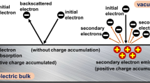 Figure 2a shows that, after impact, charge deposition (electrons sticking on the surface) takes place on the target surface and the discharge spreads on top of the target. As such, the charging of the target depends on the charging time, i.e. the time during which the charging and spreading can take place, which is dependent on \(|V_\mathrm{P}|\) and pulse width35,36. The electric field induced by the discharge in the target during the pulse is positive for \(V_\mathrm{P}>0\)35 and negative for \(V_\mathrm{P}<0\), corresponding to positive and negative charging of the target, respectively. With positive polarity, the discharge on top of the target is subjected to some filamentation, producing star-shaped patterns of field inside the target35. Conversely, when the polarity is negative, the radial expansion of the field inside the target has a more uniform appearance, in agreement with the more diffuse character of negative discharge dynamics. As is the case for positive polarity35, the radial spreading of the negative discharge is faster and larger for higher \(|V_\mathrm{P}|\).