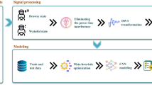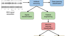 EEG signals are contaminated by different noise sources including eye movements, eye blinks, and muscle activity. Different methods have been proposed by researchers to preprocess the EEG signals. For example, Empirical Mode Decomposition (EMD) was used in41,42 that decomposes the EEG signals into a specified number of mode functions that can characterize both of neural activities and muscle artefacts. Cleaned signals were obtained by using the mode functions which present the neural activities. Wavelet-based denoising methods have also been applied in previous studies43,44,45. In those methods, Discrete Wavelet Transform (DWT) is applied to the EEG signals to decompose them to their wavelet coefficients. A threshold filter is applied then to remove the wavelet coefficients which represent the noise and artefacts. Finally, the cleaned EEG signals are reconstructed using the remaining coefficients. Independent Component Analysis (ICA) is also another method that has been widely used to preprocess the EEG channels46,47,48. ICA decomposes the raw EEG signals into independent components, where the source of each component can be identified using its scalp topography. The denoised signals are reconstructed by removing those components that are not originated from the brain lobes49,50. In this paper, we applied the ICA method via the EEGLAB toolbox51 to preprocess the EEG data. This toolbox provides some visual information using scalp topography that makes it easier than other methods to remove noisy components when the clean data are retained in the reconstructed channels. Supplementary Information presents more details about using this toolbox for EEG preprocessing.