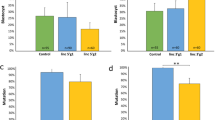 We designed gRNAs targeting the 5′ and 3′ regions surrounding the targeted 10 bp in genotypically horned embryos that resulted in high rates of mutation and, when co-injected, resulted in the predicted 133 bp deletion, the smallest possible deletion containing the 10 bp we could achieve based on gRNA design and mutation efficiency in embryos. We found that embryos microinjected 6 hpi with IVT gRNAs had much higher rates of deletion (53%) compared to those injected 8 or 18 hpi (12% and 7%, respectively) (Fig. 2c; Supplementary Table S3). Due to the high mutation efficiency when microinjecting embryos 6 hpi, this protocol was used for subsequent studies conducted in our lab21,22,23. It was interesting to note that the development rate for embryos microinjected 8 hpi was significantly higher compared to embryos injected 6 or 18 hpi (Fig. 2a; Supplementary Table S3). This could potentially be attributed to two factors: concentration of sperm used in IVF and higher editing efficiency. A concentration of 2 × 106 sperm per mL was used for embryos microinjected 6 or 8 hpi, while a concentration of only 1 × 106 sperm per mL was used for embryos microinjected 18 hpi. The sperm concentration was increased for embryos that were microinjected 6 or 8 hpi to help compensate for the shorter IVF incubation period. This increase in sperm concentration may have played a role in the higher blastocyst rate between embryos injected 8 hpi and 18 hpi. Embryos injected 6 hpi may have had a lower development rate because of the higher mutation and deletion rates compared to embryos microinjected 8 hpi. Our previous study24 demonstrated an inverse correlation between development and mutation rates generally occurs, with more efficient gRNAs resulting in lower blastocyst development rates. A trend was also seen among embryos that had deletions where the earlier the embryo was microinjected post-insemination, the lower the mosaicism rate became (Fig. 2d; Supplementary Table S3), but due to the small sample sizes in the 8 and 18 hpi groups, we were not able to detect a significant difference between the groups. This is consistent with the study by Lamas-Toranzo et al. where they microinjected gRNAs and Cas9 mRNA or RNP complexes into bovine embryos 0, 10 or 20 hpi and evaluated mosaicism levels. They found that the earlier the embryos were microinjected, the lower the mosaicism rate25. It is feasible that by introducing the editing reagents early, the genome can be edited before DNA replication occurs, resulting in a lower rate of mosaicism.