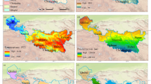The QTP is located in southwestern China (25° ~ 40°N, 75° ~ 103°E), with a total area of 2.5 million km2 and an average elevation above 4000 m (Fig. 7). The QTP is mainly covered with permafrost and grassland, with areas of glacier and desert48. The QTP, also known as the “Asian Water Tower”49, is the source of 13 major Asian rivers (e.g., the Indus, Ganges, Brahmaputra, Yangtze, and Yellow Rivers). The QTP has a clod, arid climate, with an annual average temperature below 0 °C and an annual mean precipitation of 400 mm. The seasonal distribution of precipitation is uneven, with most precipitation concentrated in the period June to September. There is a decreasing trend in precipitation from the southeast to the northwest of the plateau50. Known as the "Roof of the World" and "Third Pole", the QTP is also an area that is sensitive to global climate change, showing increasing warming and humidification in recent decades51. In addition, the QTP contains a diversity of ecosystems and fosters a historic ecological security barrier, which nurtures the development of animal husbandry and diverse cultures.
