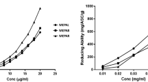 The reducing ability of AEPAS was assessed using Pulido et al.’s procedure59. We dissolved 2.5 ml of the sample (powdered) in about 2.5 ml of 200 mM sodium phosphate buffer of pH 6.6 and about 2.5 ml of 1% potassium ferricyanide. The mixtures were further incubated for 20 min at 50 °C, and then about 2.5 ml of 10% TCA was introduced to terminate the reaction. This was centrifuged for 10 min at 3000×g after which we added about 5 ml of the supernatant, an equivalent volume of water, and about 1 ml of 0.1% ferric chloride. The procedure followed above was also repeated, but in this case, it was for ascorbic acid, which was used as the reference sample and the reaction absorbance was read at 700 nm, followed by the calculation of the reducing ability which was expressed as an ascorbic acid equivalent.