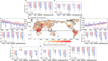 The robust regression technique is used for estimating the trends and decadal changes based on Iteratively Reweighted Least Squares Regression18. The t-test analysis is used to estimate the statistical significance of the decadal trends throughout this paper at 0.05 significance level (e.g., Figs. 1c, 2b,c, and 4c)—i.e., only statistically significant trend values are considered.