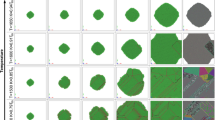 As an extension of this method, tailoring the scanning strategy can produce not only the large angle boundary (Fig. 8a), but also other types of metal hardening structures (e.g. meso-scale equiaxed “grain” (Fig. 8b) and precipitation hardening (Fig. 8c)) inspired by micro-structure of crystalline materials. Pham et al.15 have shown that the designing meso-scale structure can strengthen materials by mimicking the micro-structure of crystalline materials—such as grain boundaries, precipitates and phases. The study15 suggests that these crystal-inspired meso-scale structures are as important for their mechanical properties as are crystallographic micro-structures in metallic alloys. In our study, FEA have shown the predictability of scanning strategy on its thermal and mechanical effects (Fig. 5d,e). On this basis, FEA can be used to further verify and optimize the meso-scale control strategy to achieve the desired “grain” structure and performance and reduce the number of precious metal AM experiments. The bi-offset scanning strategy designed in this experiment forms columnar “grains” along a < 001 > direction (Z-axis; Fig. 8a), which are more inclined to introduce anisotropy. Therefore, FEA is used to demonstrate the scanning strategy of further offset at equidistant layer thickness can achieve an equiaxed “grain” (Fig. 8b, Video S1, Supplementary Information). By comparing the plastic strain distribution of columnar and equiaxed “grains”, it is shown that the latter alleviates the residual stress usually occurs in single-direction scanning (Fig. 8: points d, e). Furthermore, we demonstrated the possibility to produce precipitation hardening by adjusting the laser parameters at “grain” boundaries (Fig. 8c). In precipitate-hardened alloys, precipitates act as obstacles to the movement of dislocations thereby enhancing mechanical properties15. Laser parameters (such as laser power and scanning speed) can control the mechanical properties (such as hardness) of AM silver alloy21. We introduced precipitation strengthening into a mesoscale “grain” structure by producing embedded “precipitate domains” using different laser parameters from equiaxed “grains” (Fig. 8c). In FEA, the thermal and mechanical characteristics of “precipitate domains” (Fig. 8c: point f) are significantly different from the adjacent “grains”. The introduction of precipitate domains creates dislocation obstacles, which are expected to prevent similar problems of a rapid reduction in stress induced by slip activity in single crystals65. For FEA simulations of the AM process related to different scanning strategies, see Video S1, Supplementary Information. However, although some reports suggested that these studies of crystal-inspired meso-scale structures are no less important than microstructures in mechanical strengthening15, we realize that the two scales cannot be simply equated and that future studies are needed to explain their strengthening mechanisms more fully.