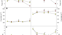 Frozen samples (100 mg) were homogenized with 50 mM Tris–HCl buffer (pH 8.0, containing 2 mM Mg2+, 2 mM DTT, and 0.4 M Suc). The homogenates were centrifuged at 4 °C and 10,000×g for 10 min, and the supernatant was used for measurement of the activities of N metabolic enzymes. Glutamine synthase (GS) activity was measured spectrophotometrically at 540 nm according to Zhang et al.38 and presented indirectly by the absorbance at 540 nm (A540) per unit protein per hour. Glutamate synthase (GOGAT) activity was determined as in Singh and Srivastava39. The reaction mixture contained 10 mmol α-ketoglutarate, 1 mmol potassium chloride, 37.5 mmol Tris–HCl buffer (pH 7.6), 0.6 mmol NADH, 8 mmol l-glutamine and 0.3 mL enzyme. The absorbance at 340 nm was monitored for 120 s and the activity of GOGAT was estimated by the oxidation rate of NADH per unit protein (nmo mg−1 protein min−1). Glutamic–oxalacetic transaminase (GOT) and glutamic–pyruvic transaminase (GPT) activities were measured according to Wu et al.40 and presented as the production rate of pyruvate per unit protein (μmol mg−1 protein 30 min−1).