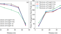 As shown in Fig. 1, the experimental system consists of a stainless steel flame acceleration pipeline, a gas distribution system, a detonation chamber, a high-speed camera, and a data acquisition system. The flame acceleration tube is a cylindrical tube of Φ = 120 mm and L = 5.5 m, and an observation window of 40 cm \(\times\) 7 cm is laid at 130 cm from the ignition end of the tube. The ignition end of the pipeline is closed, and the open end is closed with 2 layers of polyethylene (PE) film with a thickness of 0.02 mm.