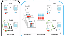 We found no significant age differences in prior beliefs about trustworthiness or in decision noise. Finding no age differences in prior beliefs was somewhat unexpected as some previous studies using repeated trust games show that the first invested amount tends to increase with age, suggesting an age-related increase in initially placed trust16,17,18,19. However, those findings are inconsistent (see20,21). By picking up on subtle, non-significant age differences in prior beliefs, our computational model was able to correctly predict that younger adolescents sampled more relative to older adolescents when the underlying reciprocation probabilities were either high or low (Fig. 3c), again showing that the model predicted sampling behaviour well. Moreover, finding that decision noise did not significantly change with age further strengthens the reliability of the results.