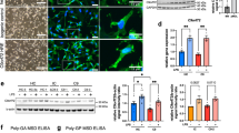 1.25 × 106 cells were used per RNA sample. Trizol reagent and chloroform were used along with the RNase Easy Mini Columns (Qiagen) with DNase I treatment. cDNA was produced using SuperScript VILO MasterMix, using 1 μg of RNA. Fast SYBR green was used for the qPCR reaction. Primer sequences in Supplementary Table 1 and data analysed using dCT method.